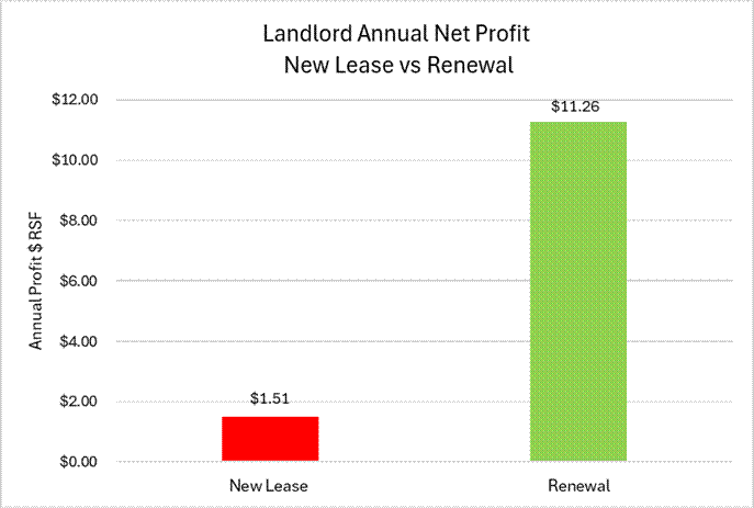 Below is a simple financial comparison of the net profit for a new lease and renewal from the landlord’s perspective:
